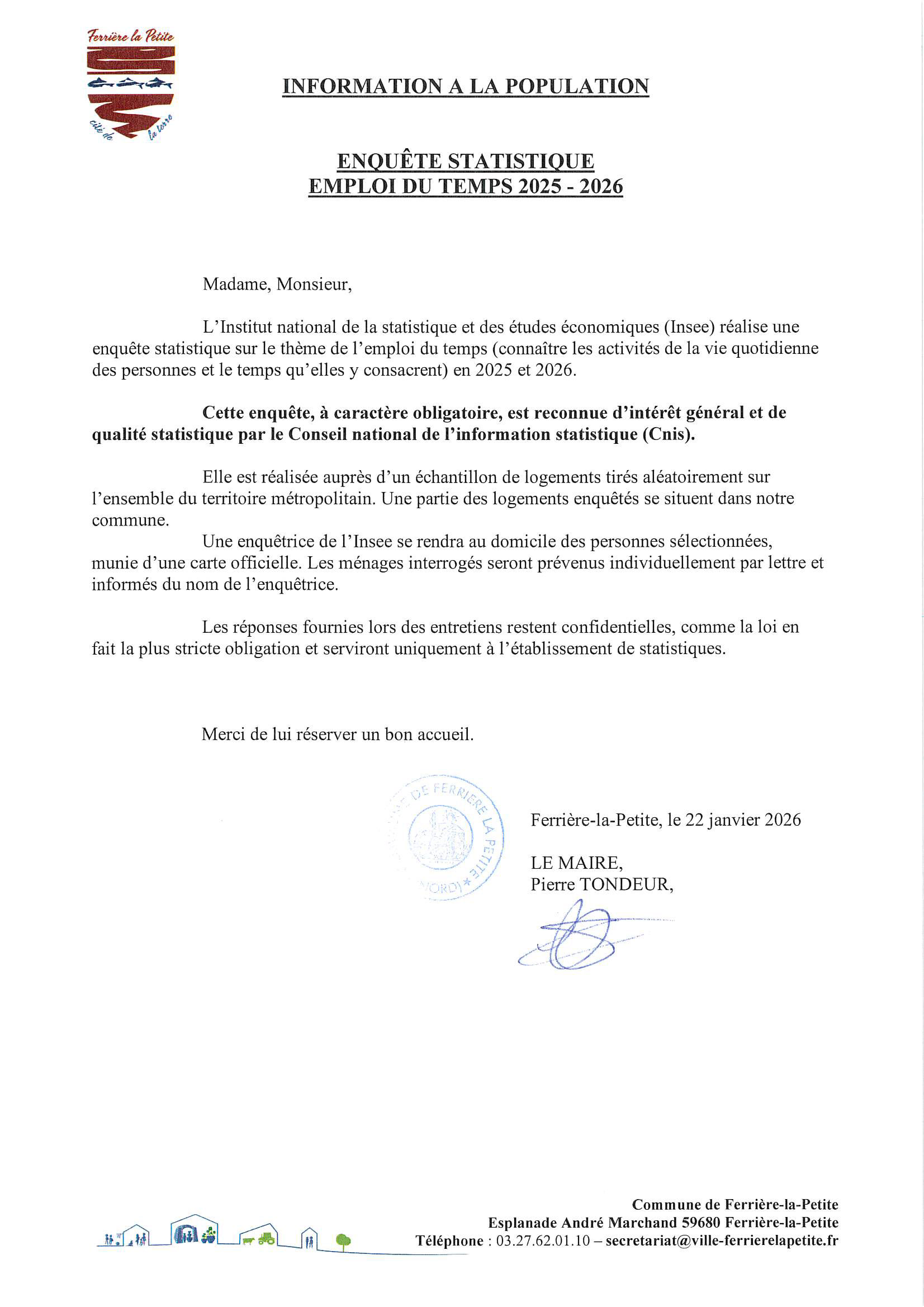 Les informations publiées par la mairie