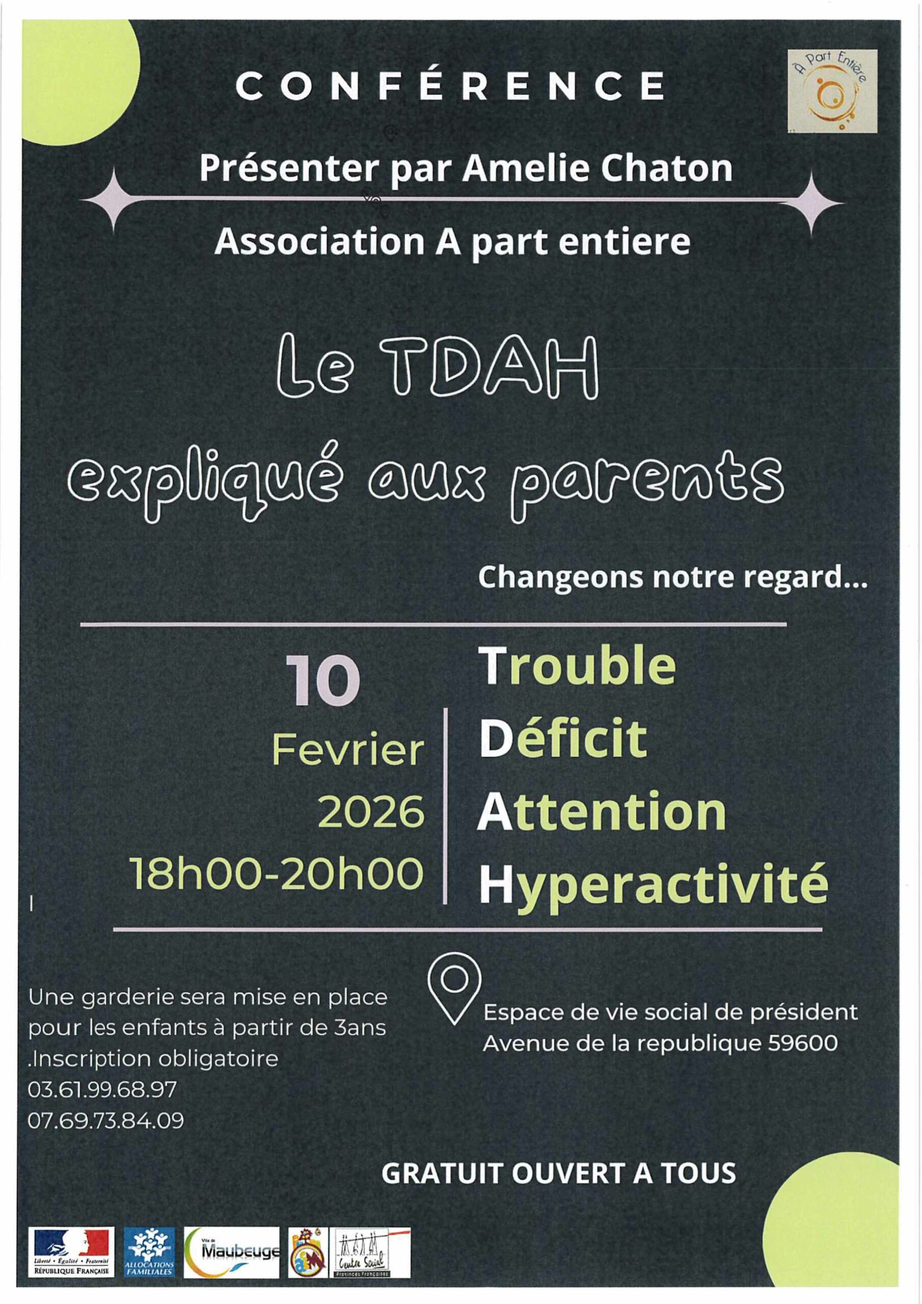 | Conférence Le TDAH expliqué aux parents Mardi 10 février |